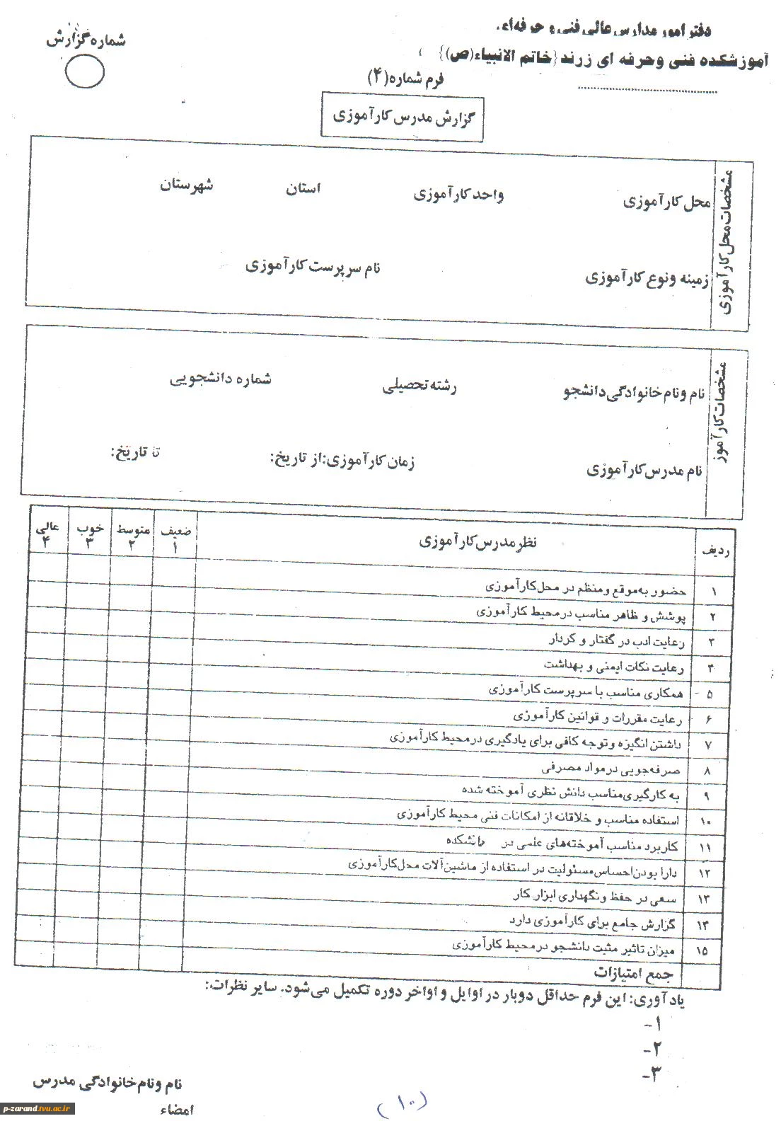 فرم های کار آموزی 11