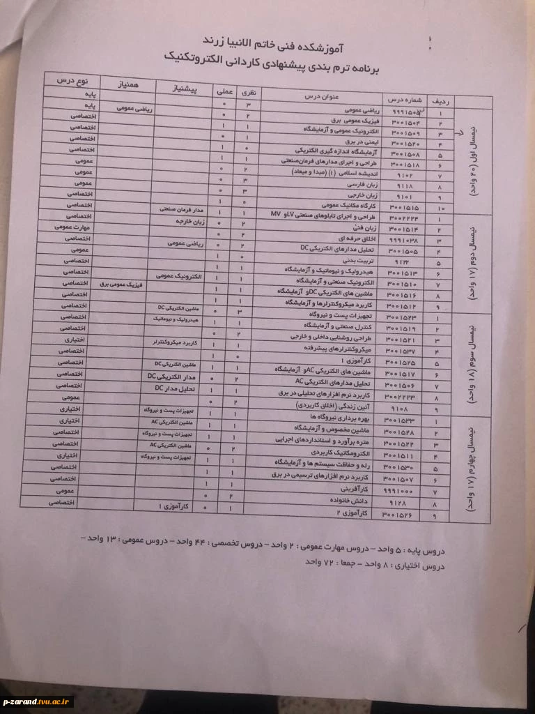 برنامه دروس رشته الکتروتکنیک مقطع کاردانی